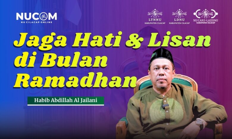 NU Cilacap Online — Menjaga kesucian Ramadhan dilakukan dengan mensucikan hati dari penyakit hati (iri, dengki, sombong) dan menjaga lisan dari perkataan sia-sia, ghibah, serta fitnah. Ini adalah inti puasa untuk meraih takwa, bukan sekadar menahan lapar, melainkan momen refleksi dan peningkatan spiritual agar ibadah diterima Allah SWT. Inilah tausiyah Habib Abdillah Al Jailani: Jaga Hati dan Lisan dari Perbuatan Hina.