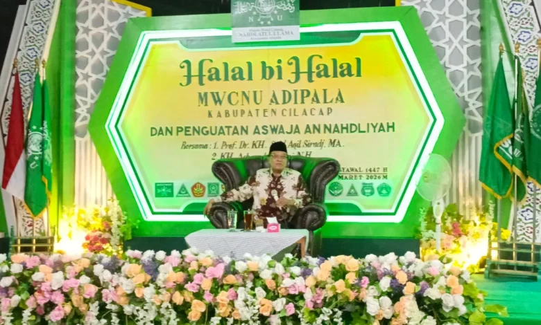 NU Cilacap Online – Majelis Wakil Cabang Nahdlatul Ulama (MWCNU) Adipala, Cilacap, menggelar kegiatan Halal bi Halal dan pengajian Akbar yang dirangkai dengan penguatan Aswaja An-Nahdliyah, Ahad (29/3/2026). Bertempat di Gor Serayu Desa Bunton Kecamatan Adipala.