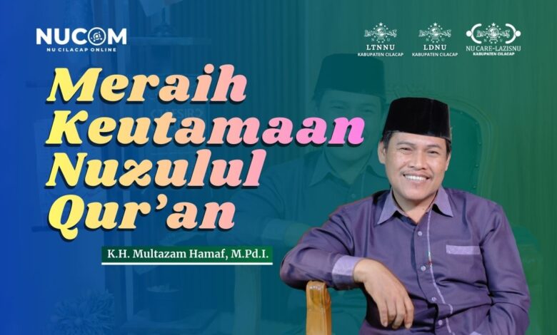 NU Cilacap Online — Kunci utama meraih keberkahan Nuzulul Qur’an adalah mencintai Al-Quran yaitu melalui interaksi intensif yang dilandasi keikhlasan, dengan membaca (tilawah), memahami (tadabbur), dan mengamalkan ajaran-Nya dalam kehidupan sehari-hari. Mencintai Al-Quran berarti menjadikan-Nya pedoman hidup, bukan sekadar bacaan seremonial. Inilah Tausiyah KH Multazam Hamaf: Meraih Keutamaan Nuzulul Qur’an.