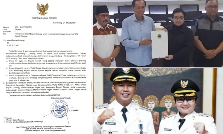 NU CILACAP ONLINE – Sosok yang dikenal dengan Mbak Ammy, Wakil Bupati Cilacap, Ammy Amalia Fatma Surya (AAFS), resmi jadi Pelaksana Tugas (Plt) Bupati Cilacap. SK pengangkatan Plt. Bupati Cilacap bernomor 100.142/0002317 ditandatangani oleh Gubernur Jawa Tengah di Semarang, pada 15 Maret 2026.