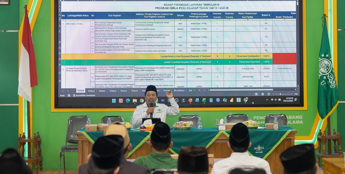 Rapat kerja PCNU Cilacap membahas arah kebijakan organisasi, evaluasi program kerja 2025, serta penataan internal struktur di tingkat cabang, lembaga, dan badan otonom.